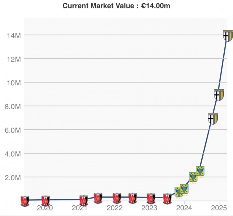 根據(jù)德轉(zhuǎn)顯示,鈴木彩艷在一年時(shí)間里身價(jià)上漲了6倍,去年3月22日德轉(zhuǎn)身價(jià)僅為200萬(wàn)歐,那時(shí)他還效力于比甲球隊(duì)圣圖爾登。