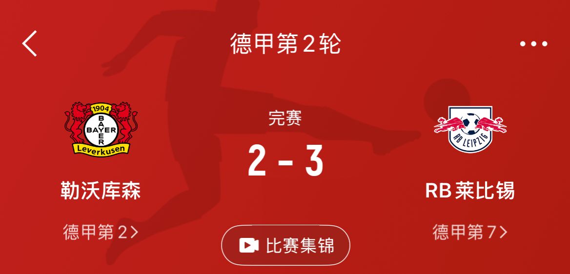大型翻車現(xiàn)場!勒沃庫森德甲23輪不敗被終結(jié),上次輸是半年前