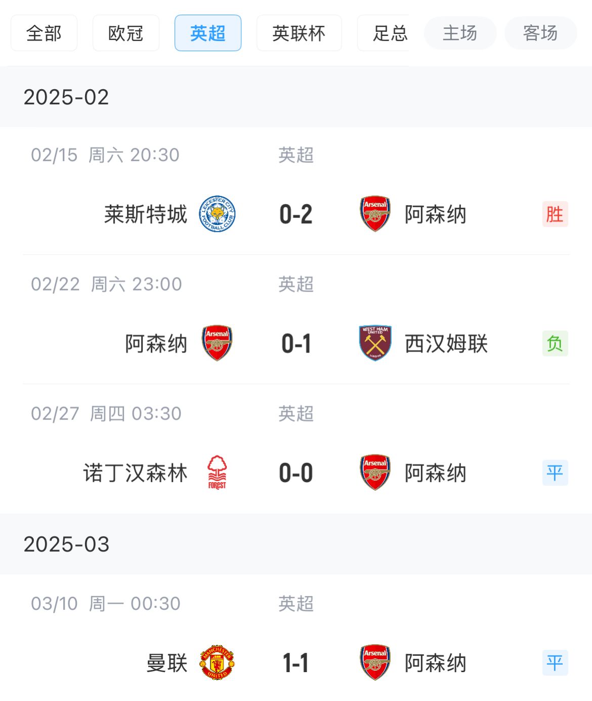 03月10日訊 本輪英超阿森納客場1-1戰(zhàn)平曼聯(lián),目前落后榜首15分,爭冠基本上是天方夜譚。