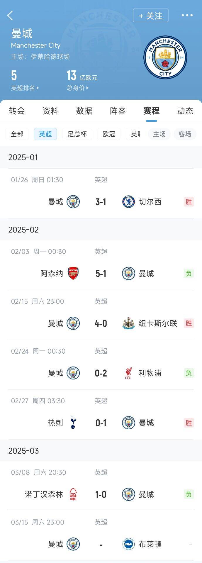 曼城近6輪打完英超第1/2/3/4/6收獲2勝3負(fù),魔鬼賽程終點(diǎn)站打第7