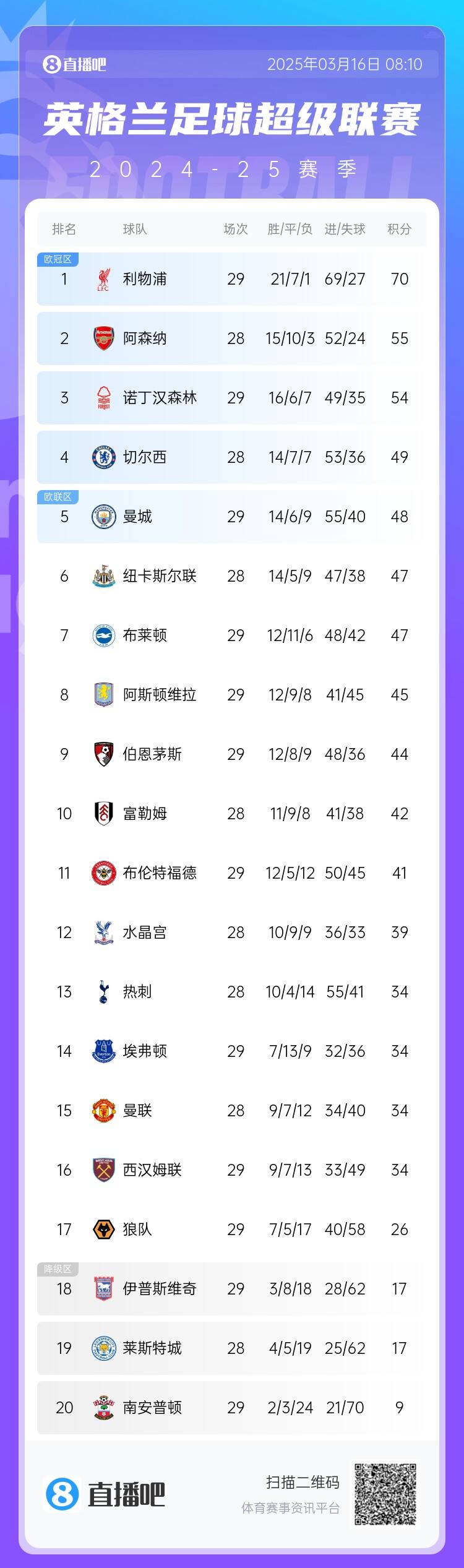 03月16日訊 英超第29輪比賽多場戰(zhàn)罷,狼隊2-1擊敗南安普頓拿下3分,現(xiàn)已領先降級區(qū)9分保級形勢大好。
