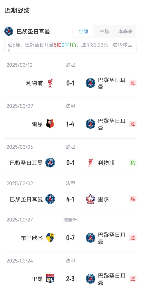 目前法甲聯(lián)賽巴黎取得了20勝5平的成績(jī),積65分高居聯(lián)賽榜首。馬賽取得了15勝4平6負(fù)的成績(jī),積49分位居聯(lián)賽第二。
